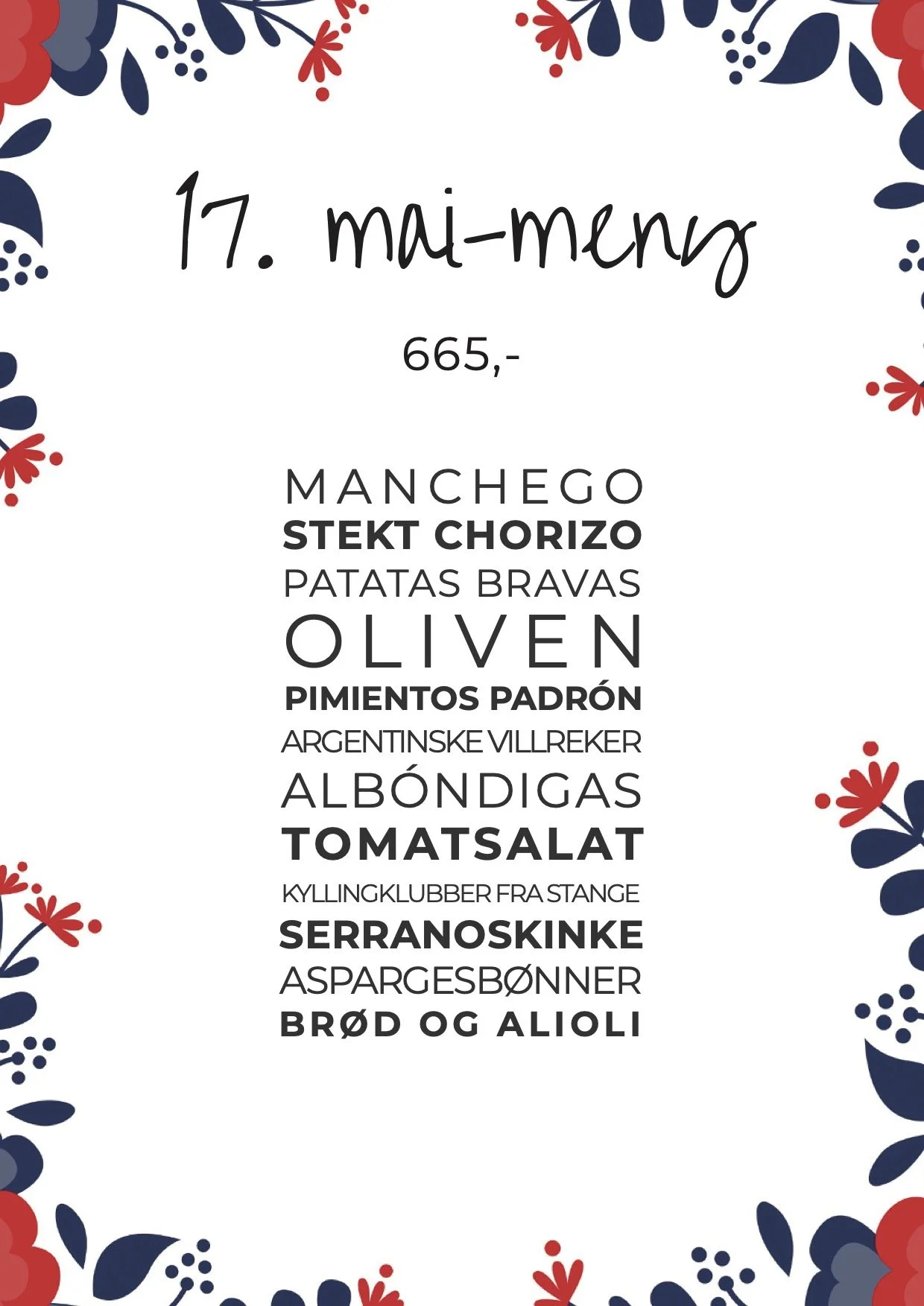 Kjøkkensjefen har satt sammen en tapasmeny som deles mellom alle på bordet, uansett om dere er en stor eller liten gjeng. Se menyen under. Merk at det ikke serveres á la carte denne dagen. Delicatessen trenger endelig bekreftelse på antall gjester senest 24 timer før, og vil belaste full menypris per gjest som uteblir uten at vi har fått beskjed innen fristen.