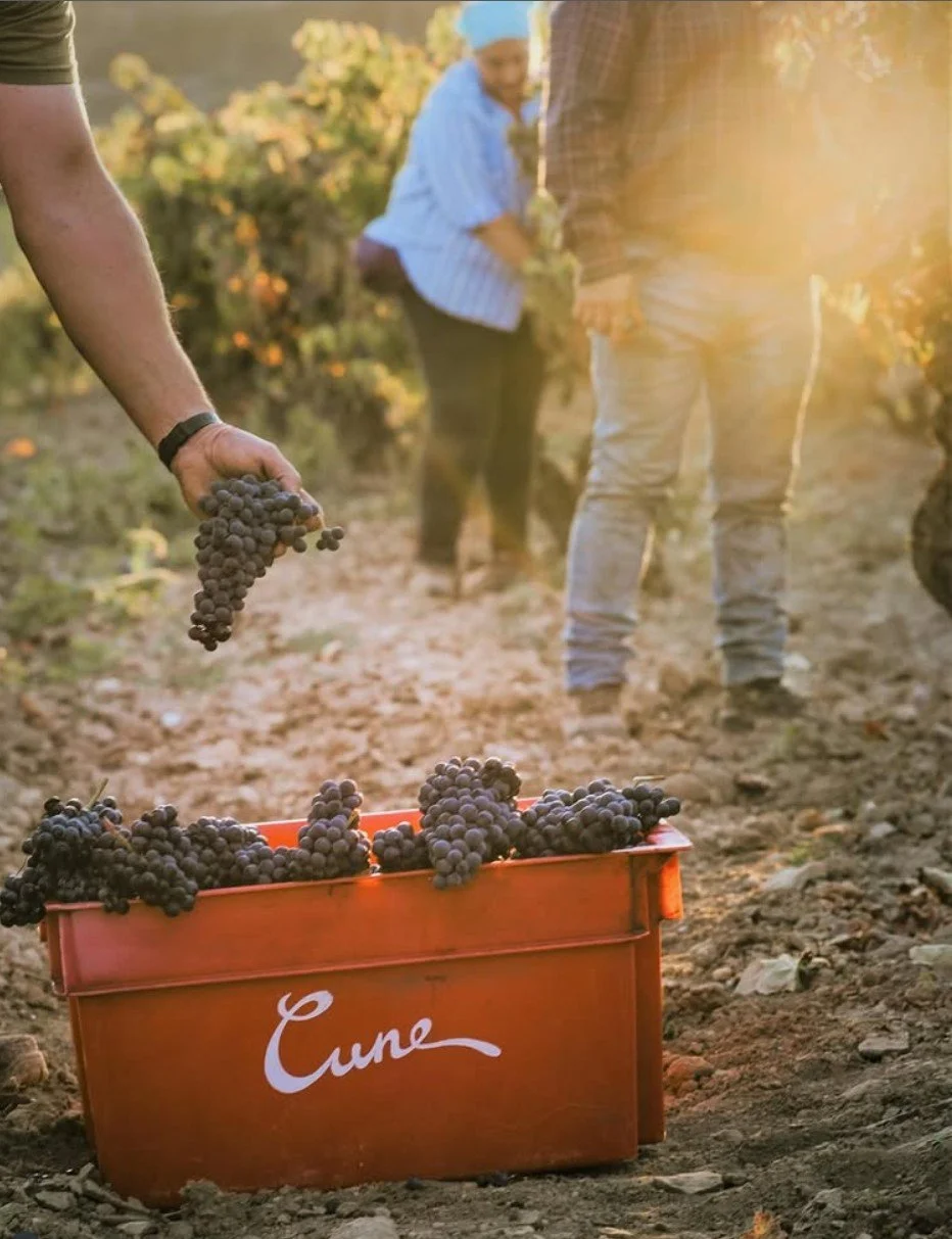 Representant David Piera fra vinhuset Cune kommer for å presentere produsenten og lede oss gjennom en smaking. Det blir åtte ulike viner denne kvelden, inkludert musserende, hvitvin fra Galicia og rødvin fra Rioja – blant annet en enkelt vinmarksutgave fra Contino og Cune Gran Reserva.